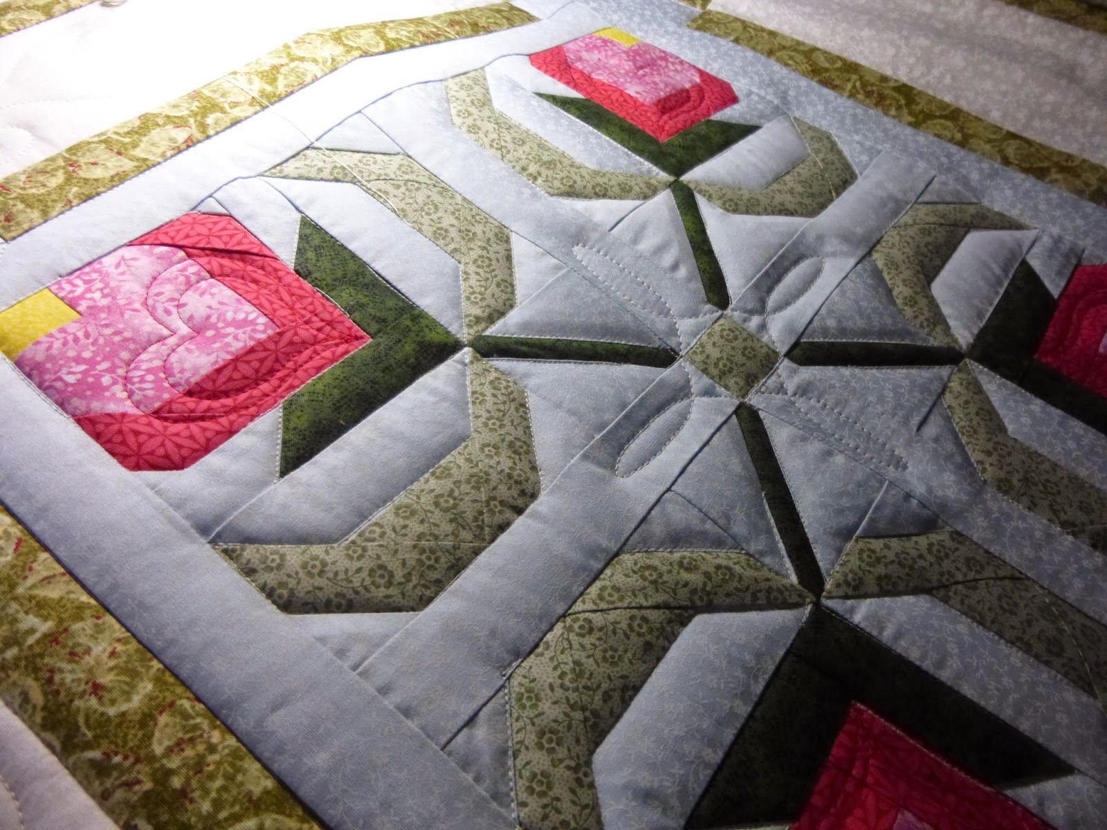 The pattern name is Those Blooming Buds. It seems that in all my awesome brilliance I forgot to snap a photo of the whole quilt after quilting.